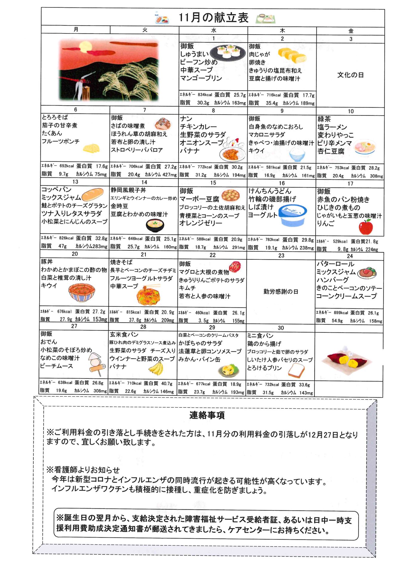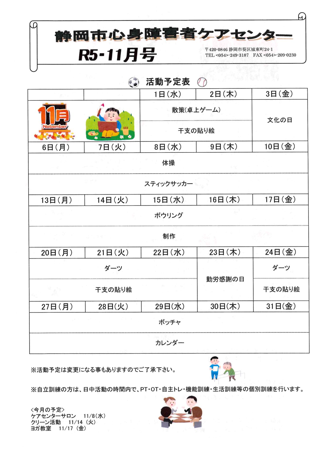 お知らせ R5.11月号おたより