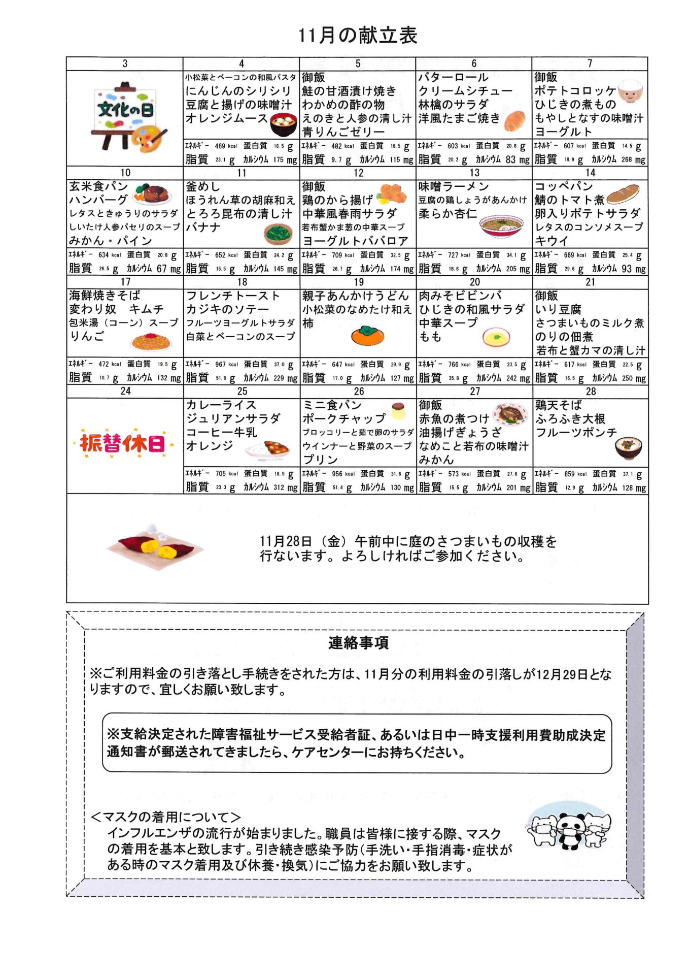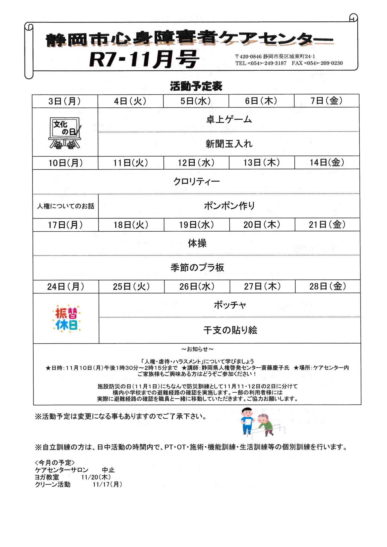 お知らせ R7.11月おたより