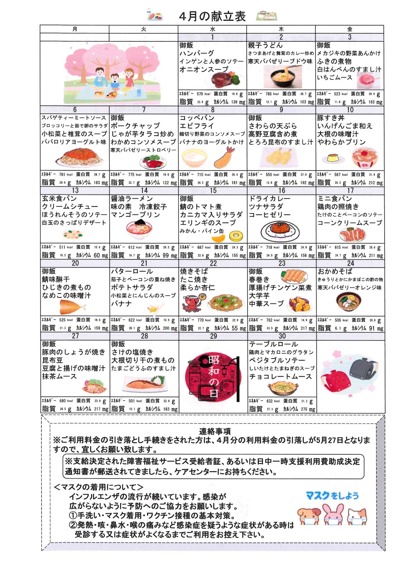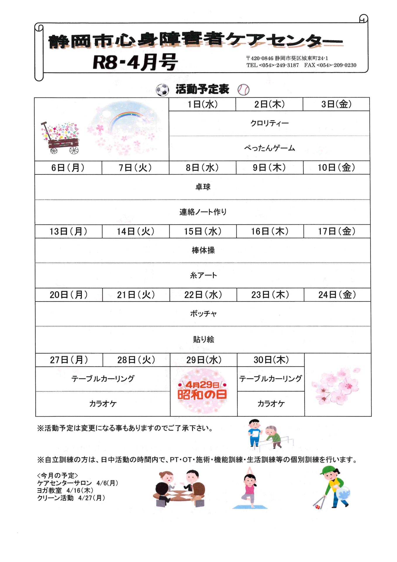 お知らせ R8.4月おたより